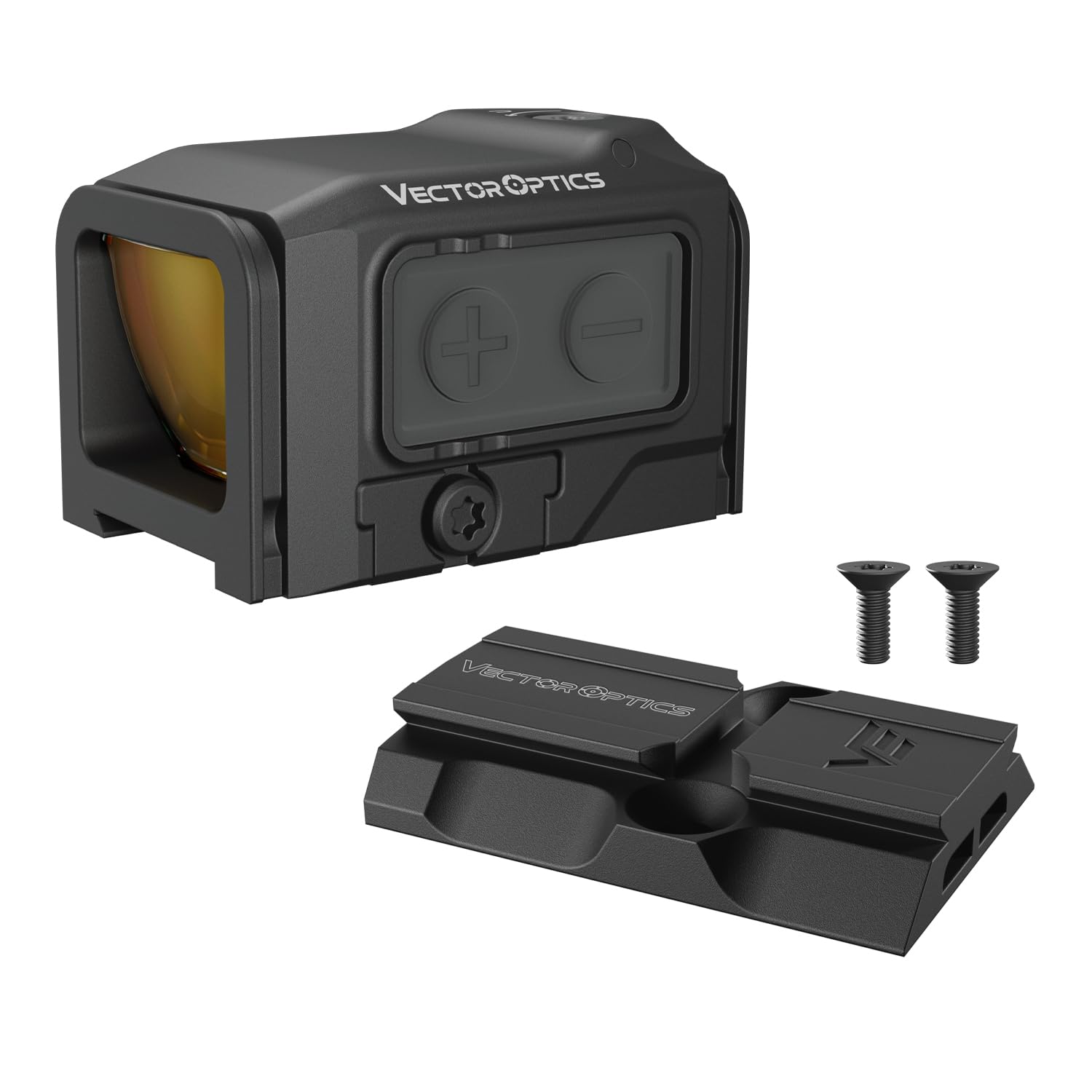 The Vector Optics Frenzy Plus is an enclosed red dot sight with a 1x18x22 window, offering a wide field of view. It features a 3 MOA red dot with multiple brightness settings, including night vision compatibility, and a motion sensor for power management. The sight is designed for pistol use and comes with an adapter for various mounting footprints.