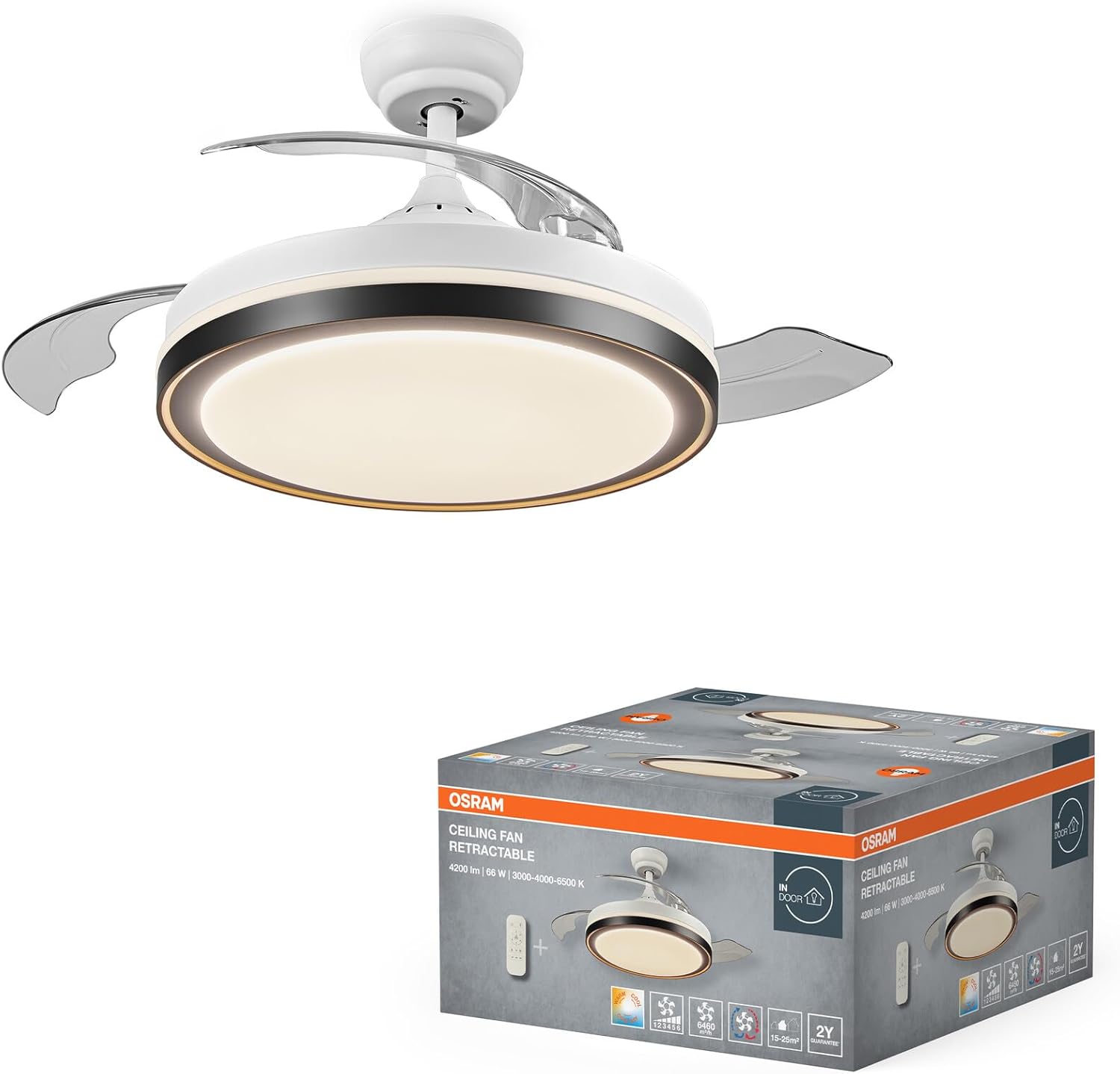 Thank you for choosing the OSRAM Retractable Ceiling Fan 1070. This innovative ceiling fan combines efficient air circulation with integrated LED lighting, featuring retractable blades for a sleek, space-saving design. This manual provides essential information for safe installation, operation, and maintenance of your new ceiling fan.