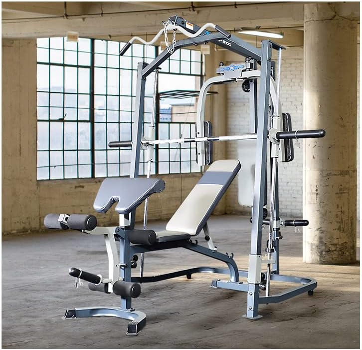 The MP3100 is designed to provide a comprehensive full-body workout, combining a Smith machine, an adjustable weight bench, and a cable pulley system. Its robust construction is suitable for home gym environments.