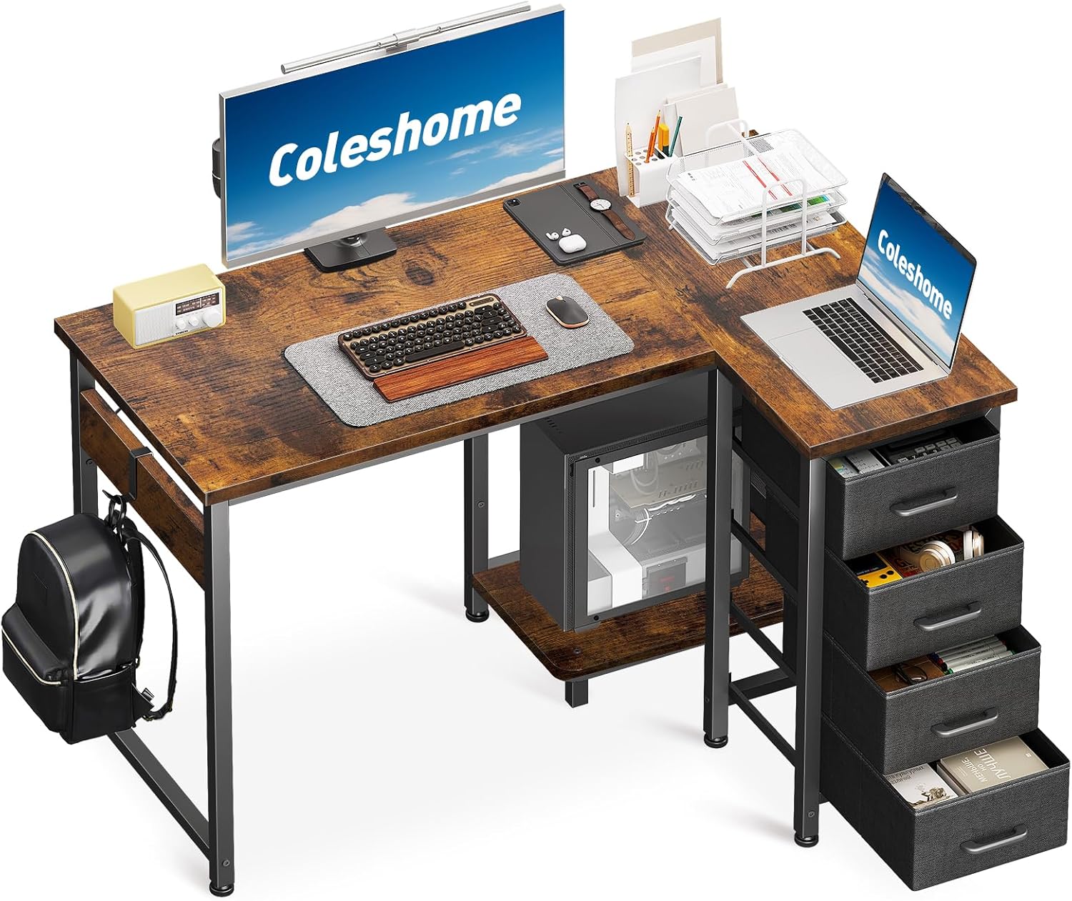 The Coleshome L-Shape Corner Desk is designed for versatile use in home offices, studies, or bedrooms.