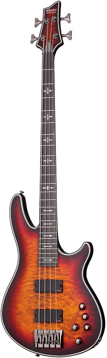 This manual provides essential information for the setup, operation, and maintenance of your Schecter Hellraiser Extreme-4 4-String Bass Guitar. The Schecter Hellraiser Extreme-4 Bass Guitar is a 4-string instrument featuring neck-thru body construction. It includes highly figured maple tops, abalone binding, and satin finishes. The bass is equipped with black chrome covered EMG 81/89R pickups, providing an active tone. This model is available with Ebony or Maple fingerboards and a choice of bridge types.